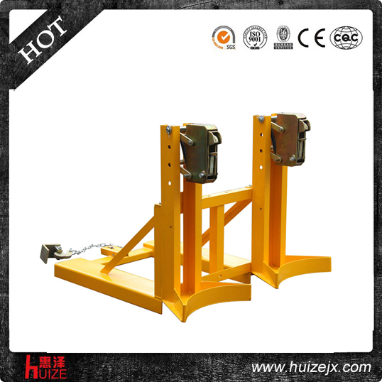 1.雙桶可調(diào)式支架 2.大圓弧托架?純機械機構(gòu)設計可與叉車方便地配合,僅依靠叉車的動作,不需要其它的動力,可自動一次搬運2個桶, ?能處理更多類型的桶,包括鋼制油桶和塑料油桶, 能在集裝箱等這樣狹小的環(huán)境內(nèi)裝卸桶裝物質(zhì),可極大地提高空間利用率, 與貨叉連接配有自鎖裝置確保油桶夾在坡度上和顛簸路面使用時不會滑落.