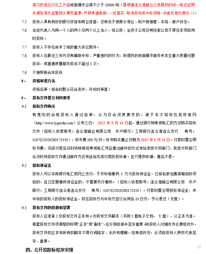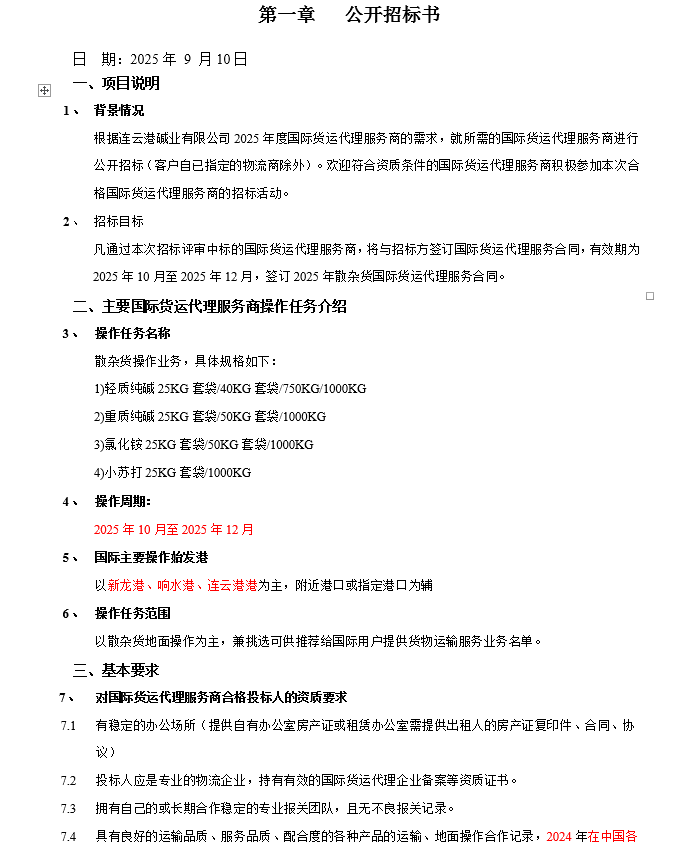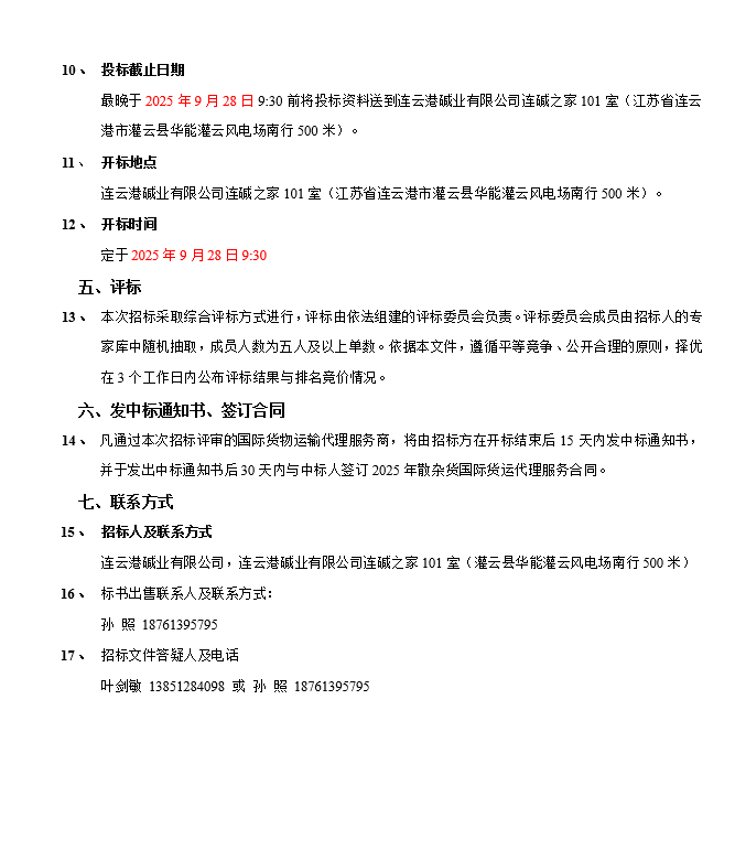 連云港堿業(yè)有限公司散雜貨國際貨運代理服務(wù)商項目招標(biāo)公告